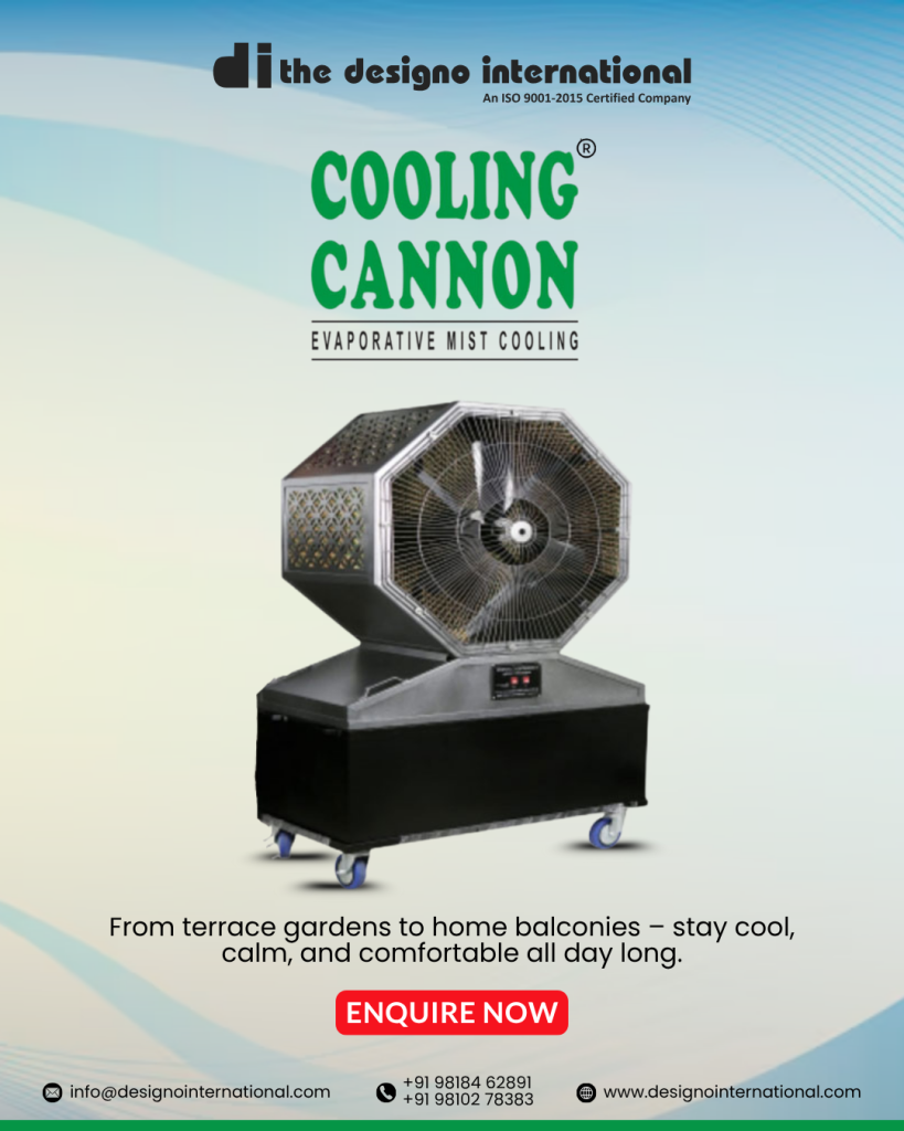 - All The Designo International Cooling Cannon Coolers are designed and manufactured to be easily installed with customised application, cost effective to run and require minimal maintenance. The Designo International’s latest innovation in climate control is appropriate for providing outdoor cooling through the principle of evaporative cooling for various applications, be it residential, commercial or industrial. The Designo International offers a fine quality range of cooling and misting cannon systems, which have various features including high performance, strong edges, easy to use and low maintenance. These products also have an option of customization as per our clients. We offer demonstration to help our clients.